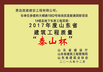 2017年度山东省建筑工程质量“泰山杯”